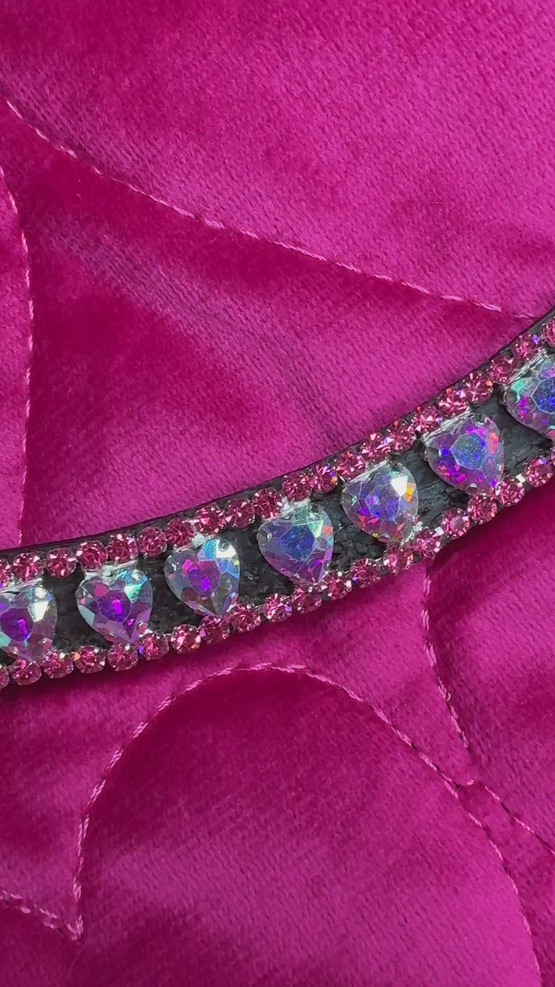 Adorned with delicate crystal heart detailing, the Queenie browband catches the light with understated sparkle, creating a look that is both classy and eye-catching. Perfectly balanced between luxury and practicality, it elevates your bridle without overwhelming your horse’s natural elegance.