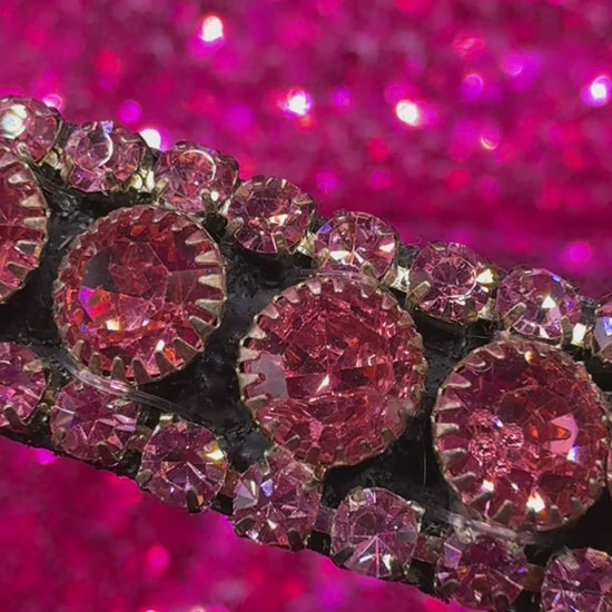 Add a touch of refined elegance to your horse’s bridle with The Posey, a stunning pink crystal browband that sparkles with every step. Handcrafted with precision, this piece features rows of genuine crystals in rich rose and blush tones, set in a sleek black or brown leather backing that enhances the brilliance of every stone.